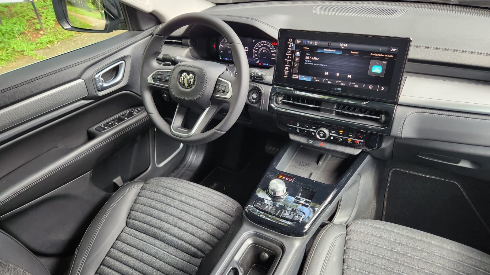 Durante o uso diário, percorri trajetos de curta e média distância, com trânsito variado. A posição de dirigir elevada contribuiu para a leitura do entorno, enquanto os sensores de estacionamento dianteiros e traseiros, além da câmera de ré, auxiliaram nas manobras. O conjunto de direção e suspensão manteve comportamento consistente dentro da proposta do modelo.No interior, a versão Big Horn oferece central multimídia Uconnect de 12,3 polegadas com conectividade sem fio para Android Auto e Apple CarPlay, além de quadro de instrumentos digital de 10,3 polegadas. O sistema Ram Connect amplia as funções remotas e de monitoramento do veículo. O ar-condicionado digital de duas zonas, as seis portas USB e o carregador por indução compõem o conjunto voltado à conectividade e funcionalidade.