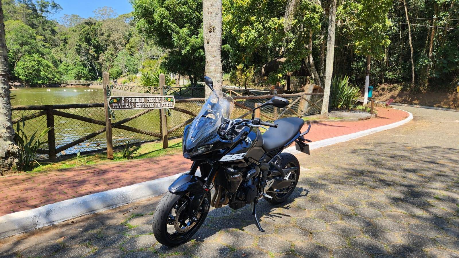 Na prática, a suspensão dianteira invertida de 41 mm e o monoamortecedor traseiro ajustável mostraram bom equilíbrio entre estabilidade e absorção de irregularidades. O conjunto respondeu bem às ruas esburacadas da capital e se manteve firme nos trechos mais velozes. Os freios, com discos duplos na dianteira e simples na traseira, reforçados pelo ABS, ofereceram segurança nas diferentes situações enfrentadas.