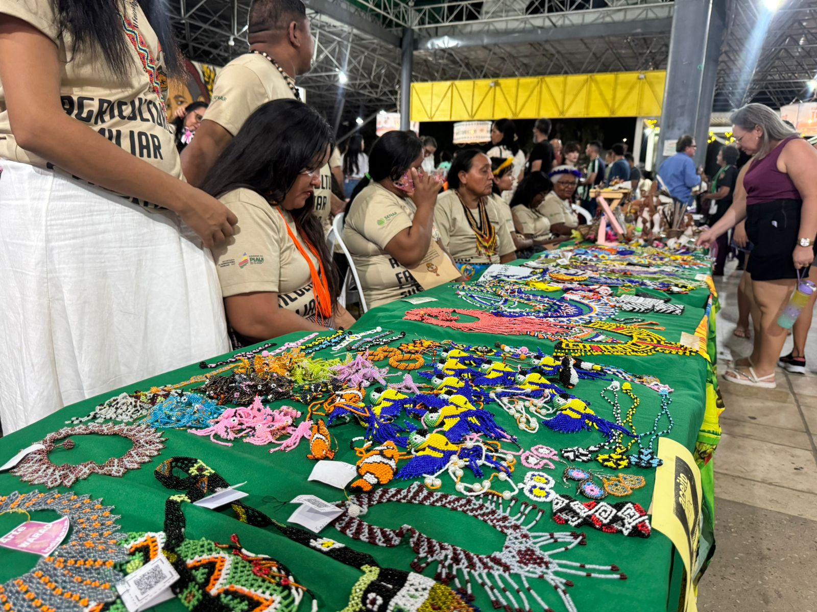 O artesanato também tem lugar especial na feira. Maria Margarida dos Santos Silva, da etnia Timbira, veio do bairro Poty Velho, em Teresina, e traz bonecas, incensários, colares, brincos, cumbucas, copos, lamparinas e bijuterias. "Tem muita coisa", convida ela.