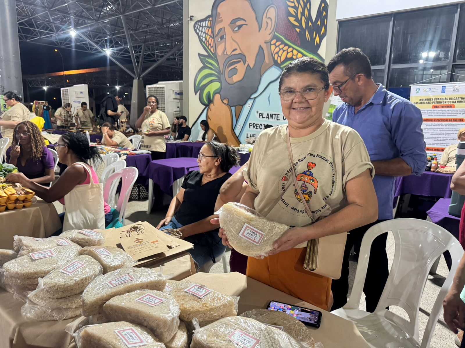 Quem procura produtos variados pode encontrar com Mariana Alves, que representa o Movimento Social MAB (Movimento dos Atingidos por Barragens). Ela trouxe sequilhos, tapioca fresca, farinha branca, farinha de puba, azeite de coco, ovos caipira e rapadura de caju. Os produtos variam com preços que variam de R$ 5 a R$ 36.