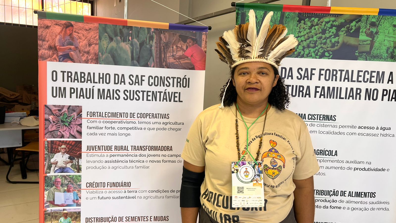 Vinda de Cristino Castro, região Sul do Piauí, a indígena Mercedes Alves da Silva ressaltou que a Feira e as oficinas e palestras são importantes para o fortalecimento da autonomia, reconhecimento dos produtos e do trabalho. “A gente traz com os produtos a identidade do nosso povo. Nosso artesanato é com pneus recicláveis. Então, é uma forma também de ajudar o meio ambiente, a natureza, contribuindo para transformar o pneu em artesanato. Ao mesmo tempo, a gente produz milho, feijão, uma diversidade na agricultura familiar”, contou.
