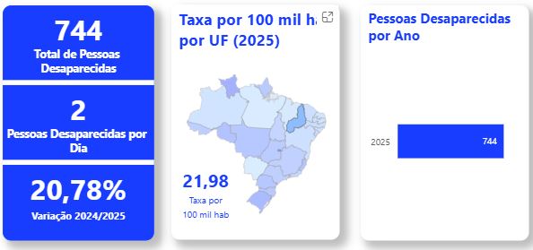 Em todo o Brasil, 84.760 pessoas foram registradas como desaparecidas em 2025, reforçando a dimensão do desafio enfrentado pelos órgãos de segurança pública e pelas famílias que convivem com a incerteza da ausência de um parente.