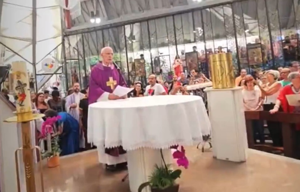 Foto: Reprodução Fiéis lotaram a capela da Universidade São Judas para a missa celebrada pelo padre Júlio Lancellotti