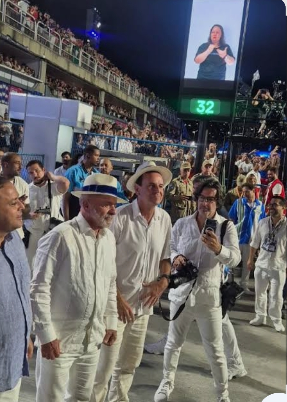 Nordestinos retratados na avenida foram muito aplaudidos O presidente acompanhou o desfile no camarote da Prefeitura do Rio de Janeiro. A primeira-dama Janja, que inicialmente estava prevista para participar, não desfilou, e Fafá de Belém entrou em seu lugar. O samba-enredo incluiu referências diretas ao PT, repetiu o grito “Olê, olê, olê, olá, Lula, Lula” e mencionou o número eleitoral do partido, além de citar Janja.