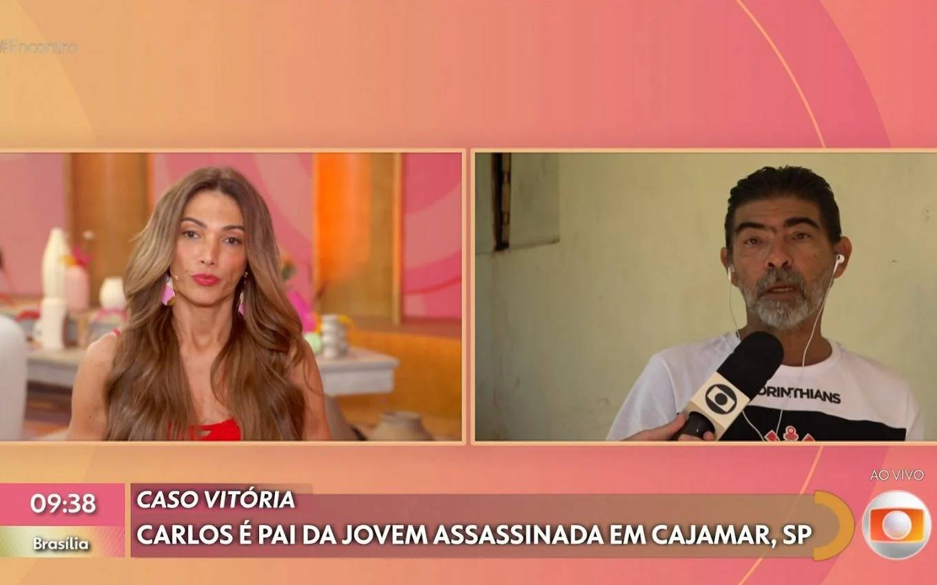A edição de sexta-feira (7) do programa "Encontro", da TV Globo, gerou polêmica após a apresentadora Patrícia Poeta compartilhar ao vivo com Carlos Alberto Souza, pai de Vitória, detalhes sobre a investigação do assassinato de sua filha, ocorrido em Cajamar, São Paulo. Durante a entrevista, Poeta revelou, sem que o pai soubesse, a identidade do suspeito, o que provocou uma série de críticas nas redes sociais.
