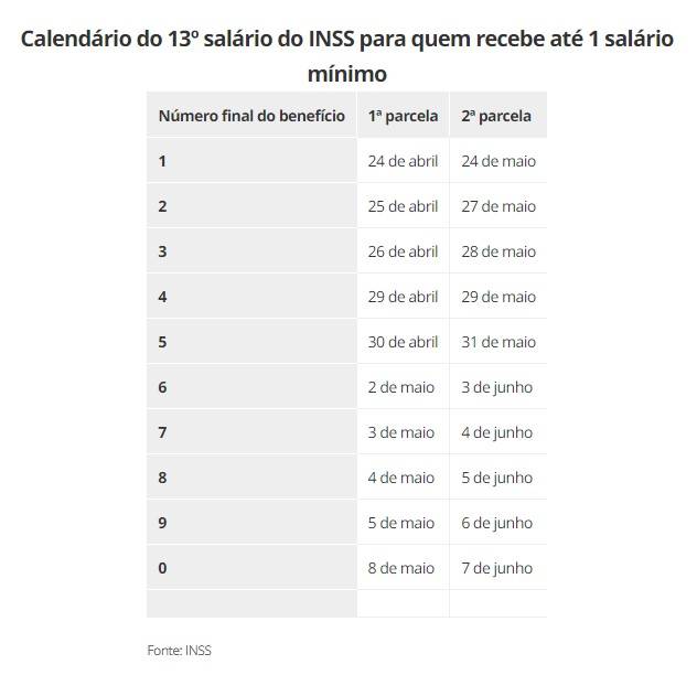 Confira o calendário de pagamento: