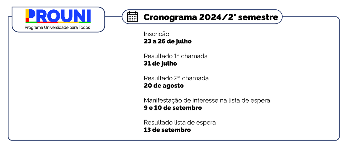 Confira a programação completa do Prouni 2/2024: