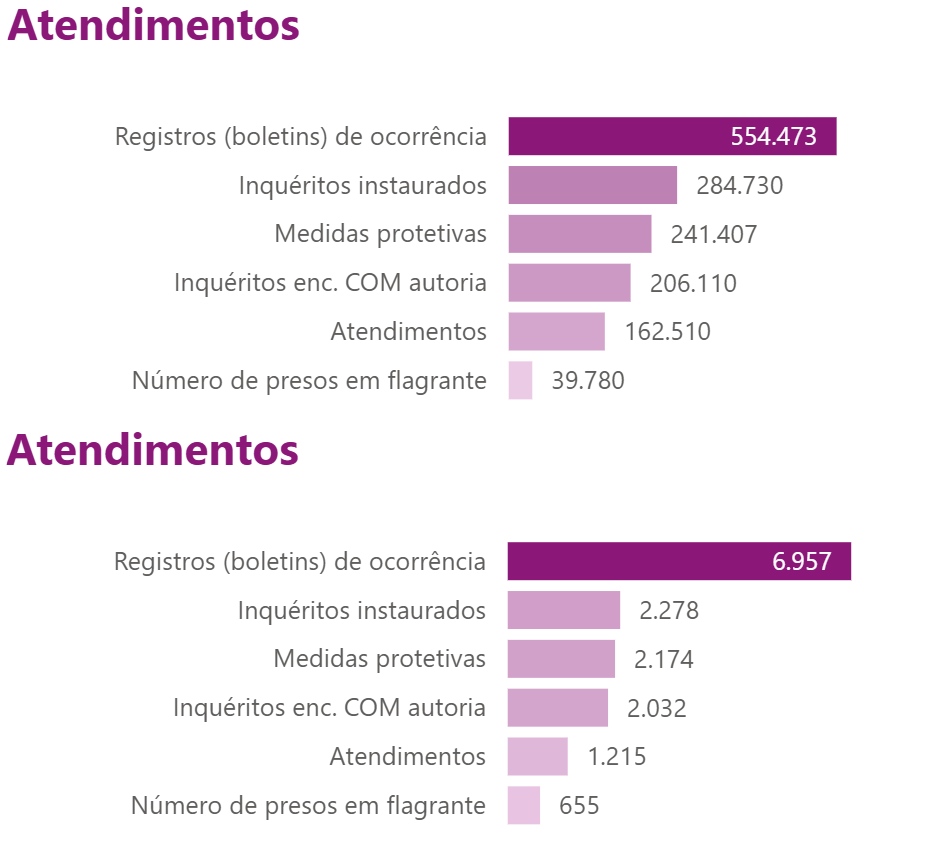 No Brasil, as delegacias especializadas registraram mais de 554 mil boletins de ocorrência, com destaque para: