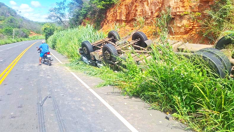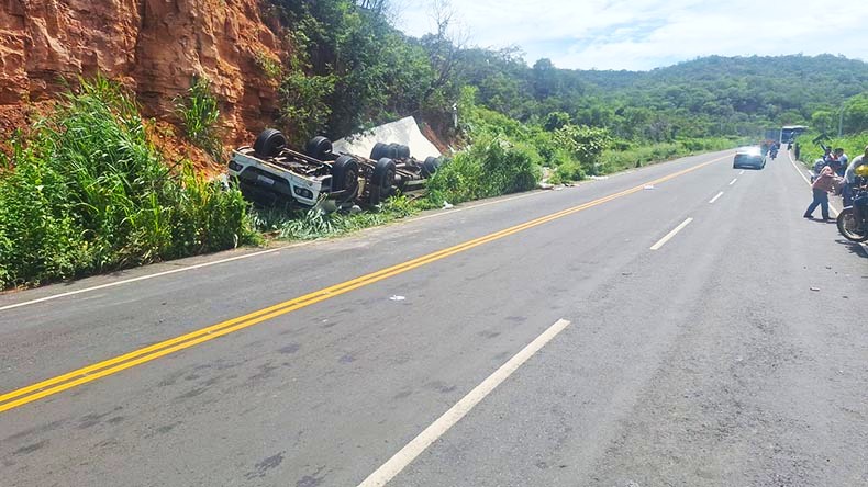 Foto: Reprodução/internet Caminhão capotado na PI-141 deixa uma pessoa morta e outra ferida no Sul do Piauí.