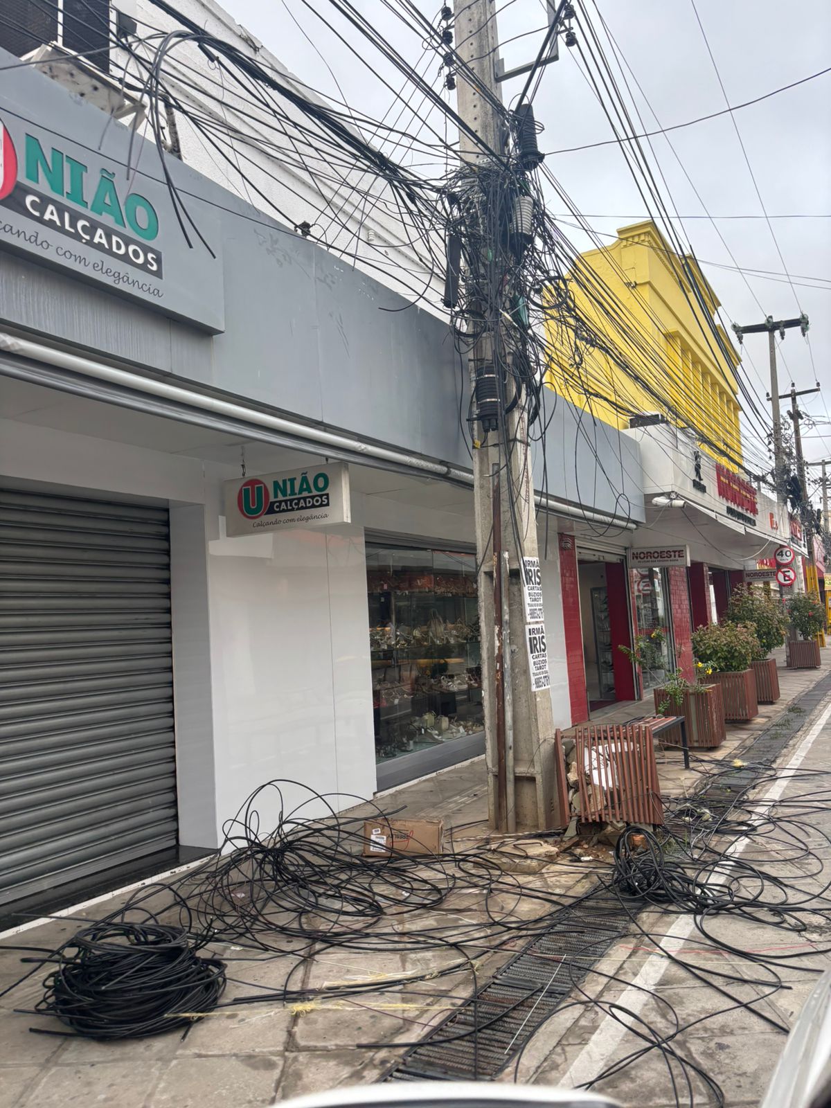 Enquanto isso, quem caminha pelo centro da cidade ainda encontra postes sobrecarregados, fios soltos, cabos enrolados e trechos da fiação pendurados em altura irregular. Além da poluição visual, a situação representa risco real de acidentes para pedestres, motociclistas e motoristas.