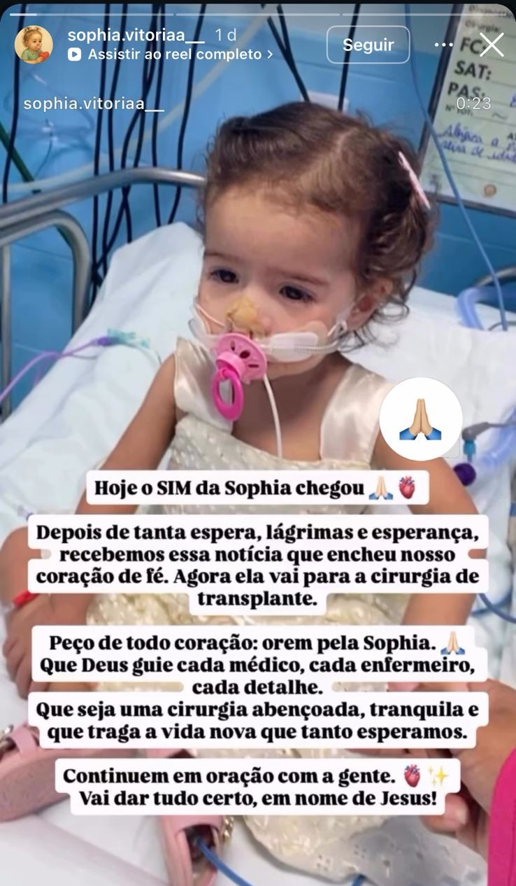 Sophia recebeu o diagnóstico em novembro de 2024. Natural do interior do Ceará, a família precisou se mudar para Fortaleza para garantir o acompanhamento médico e o tratamento especializado da menina.
