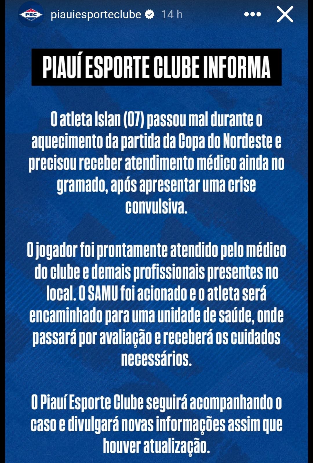 #Islan Piauí #crise convulsiva jogador #Piauí x Fluminense-PI #Copa do Nordeste #jogo atrasado Teresina