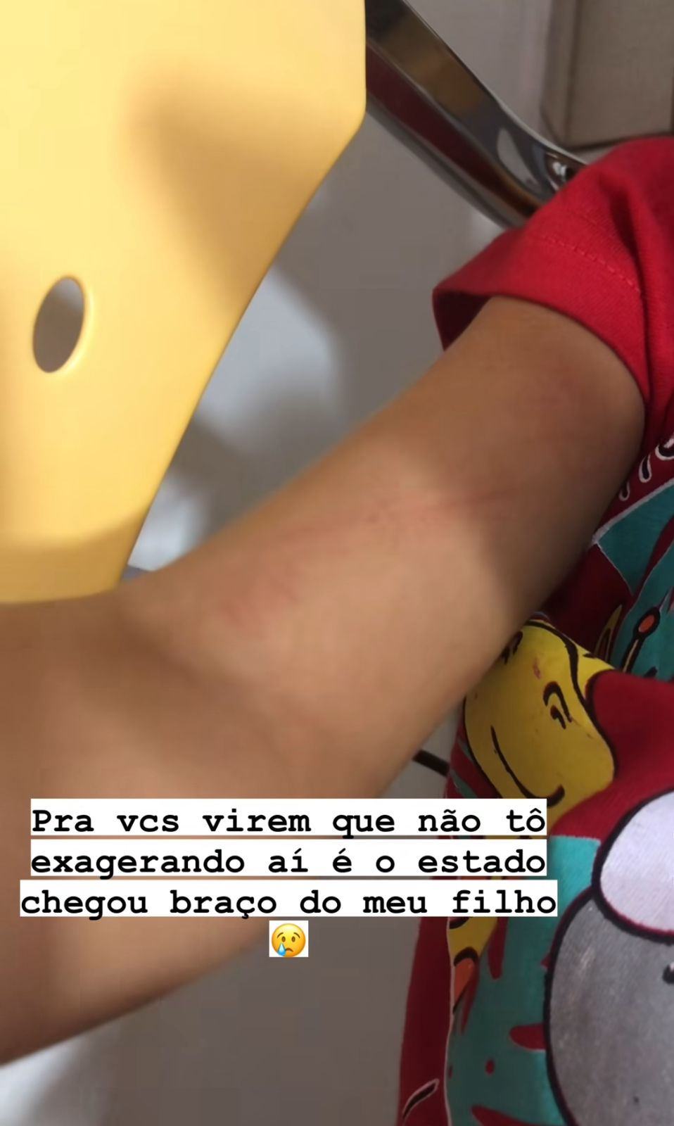 "A escola deveria ser um lugar onde as mães deveriam deixar seus filhos e ficar tranquilas, mas infelizmente isso não tem sido possível porque além da falta de segurança existem também aqueles profissionais, que nem sei porque escolhem essa profissão, não desempenham ela com amor e quem sofre com isso são os nossos filhos. Nos últimos dias mandar meu filho de 4 anos para a escola tem sido uma tortura porque praticamente todos os dias ele chega machucado e as professoras não conseguem me explicar o motivo, mas hoje foi a gota d'água", relatou Silvia Oliveira no Instagram.