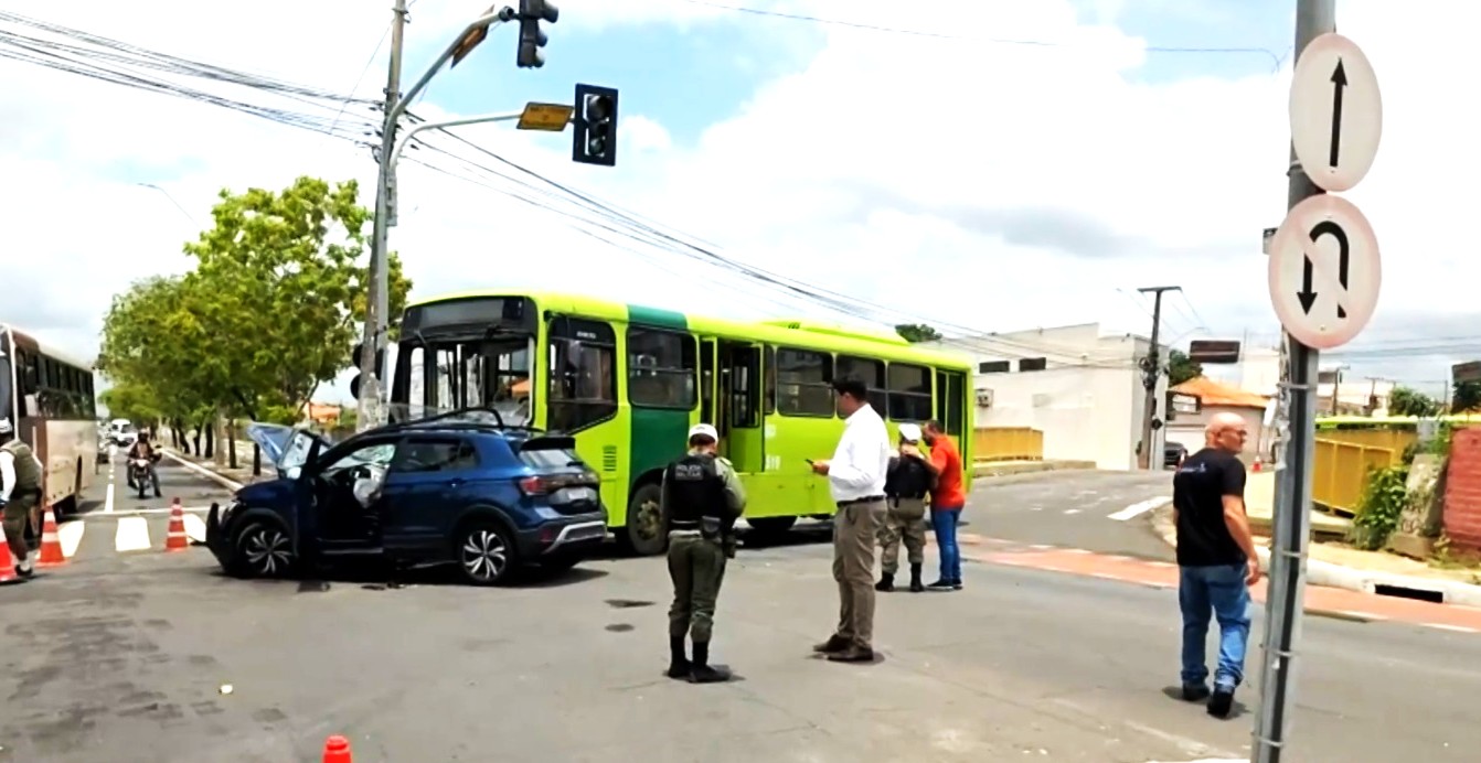 Três pessoas ficam feridas em acidente entre ônibus e carro em Teresina; assista vídeo