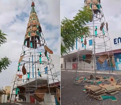 #árvore de natal #desmontada #furto #fiação elétrica #praça pedro II #vandalismo