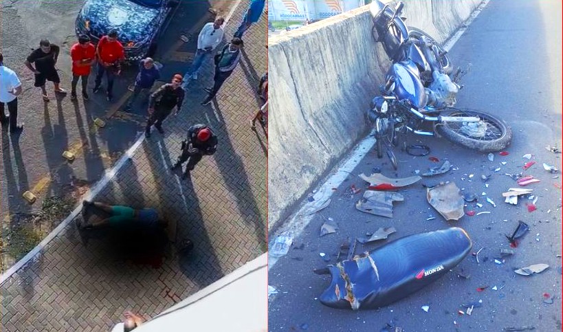 Um motociclista, identificado como Jeferson Morais, que trabalha em uma borracharia, caiu do viaduto Prefeito Firmino Filho, localizado no bairro Tabuleta, zona Sul de Teresina, após uma colisão entre um carro e a motocicleta que ele pilotava. O acidente ocorreu na manhã desta terça-feira (31).