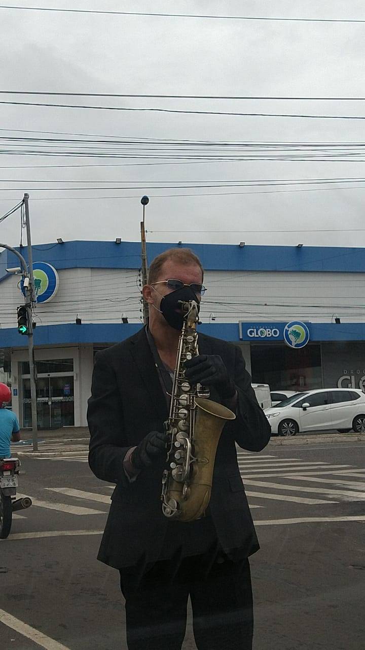 A pandemia mundial de Covid-19 tem feito com que milhares de pessoas usem a coragem e a criatividade para poder sobreviver. E foi isso o que fez o músico piauiense Jeferson Novaes, 28 anos. Todos os dias ele ganha o seu sustento tocando saxofone no cruzamento das avenidas Nossa Senhora de Fátima com Dom Severino, um dos mais movimentados da zona Leste de Teresina. Para ele, tocar lá também é um prazer e uma forma de divulgar a arte como forma de embelezar e contribuir com o mundo.