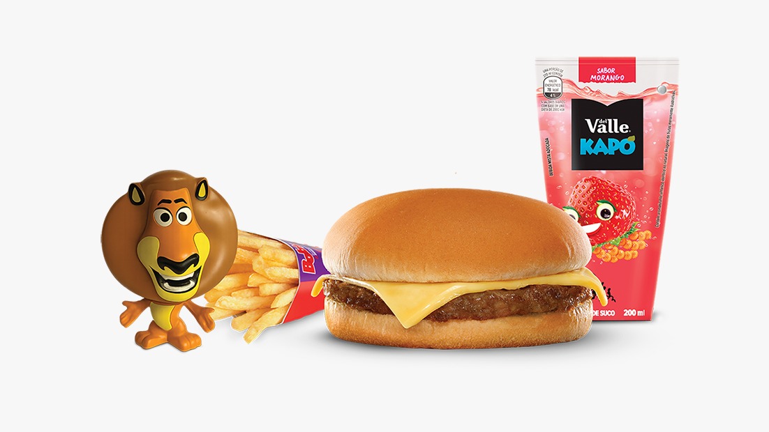* Combo Bob’s Play Burger: Cheeseburger, batata palito pequena, Del Valle Kapo e 1 personagem.