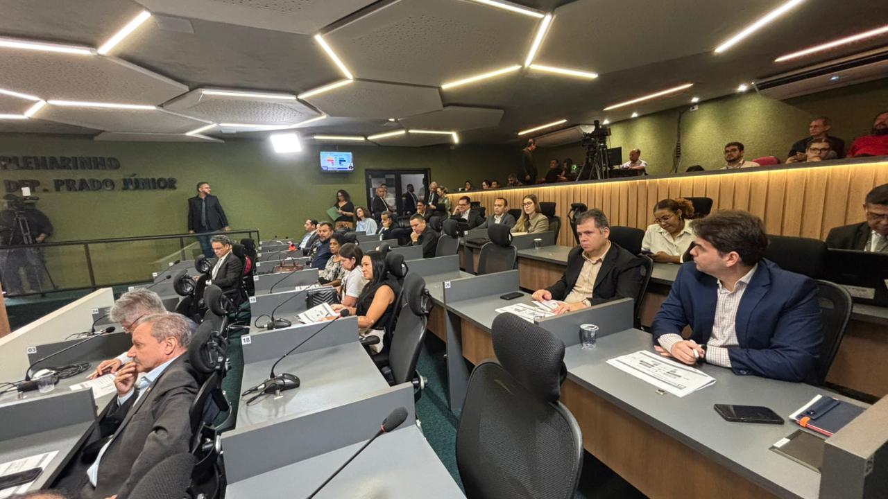 Deputados assistindo a prestação de contas do secretário Emílio Junior