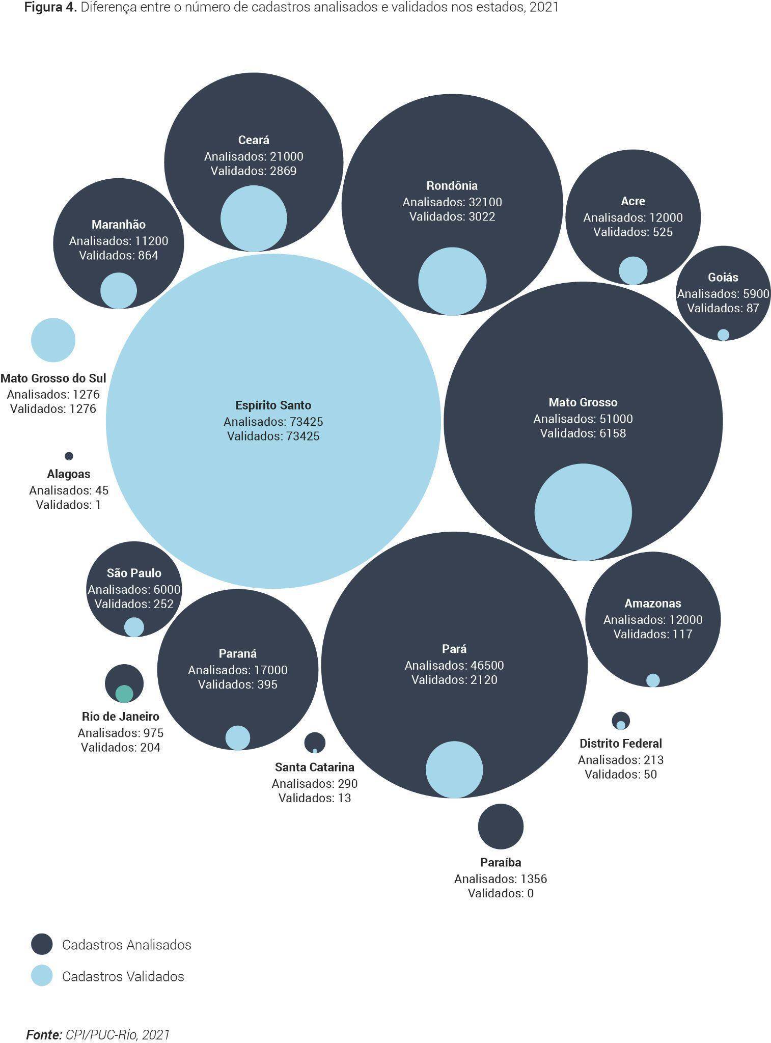 O gráfico abaixo (figura 4 do estudo) ilustra essa diferença entre os estados em relação a análise e a validação dos cadastros.