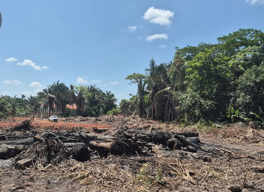 A equipe técnica se deslocou rapidamente até o local e percorreu toda a área indicada, onde constatou uma intervenção irregular às margens do riacho Itararé. Na margem esquerda, os fiscais identificaram trechos já totalmente desmatados; na margem direita, encontraram indícios de queima parcial e supressão de vegetação nativa.