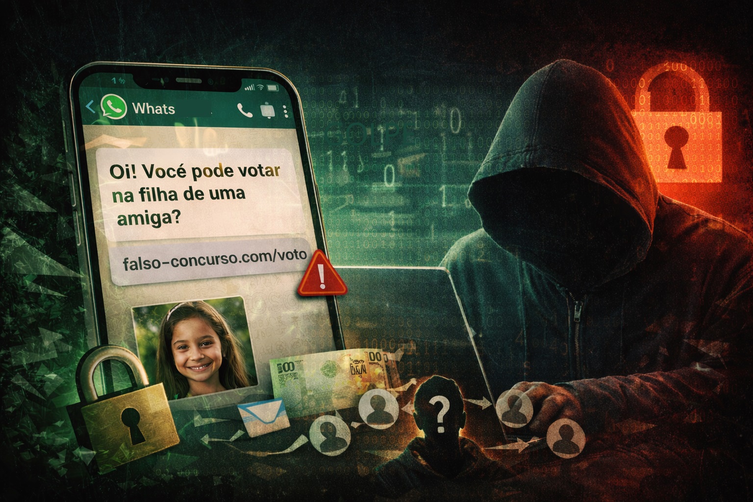 Um novo golpe chamado GhostPairing voltou a circular no WhatsApp e pode sequestrar sua conta. Tudo começa com uma mensagem de alguém conhecido pedindo: “você pode votar na filha de uma amiga?”.