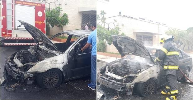 Um veículo Ford Focus pegou fogo na tarde desta sexta-feira, 22, quando o condutor saía do estacionamento do Centro de Saúde Medplan, no Centro de Teresina. O motorista estava com a esposa e o filho no carro, quando foi alertado por populares sobre as chamas que se iniciavam no motor.