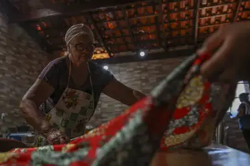 Os agricultores da comunidade trabalham com viveiros de plantas e respeito aos saberes ancestrais de agroecologia. Os produtos são reconhecidos na comunidade e fora dela. “A mandioca é um dos mais vendidos porque organizamos espaços diferentes para plantação e colheita, e também por resistir às estiagens. Aqui é nosso berço sagrado”. O irmão dela, João Paulo, descascava a mandioca lembrando que o produto vai garantir farinha, caldo, bolo. “É muito importante para a gente”.