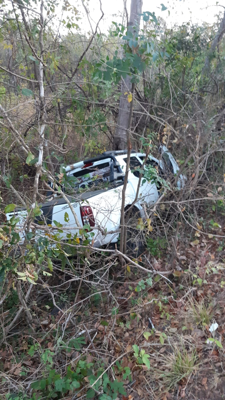 Os policiais estiveram no local e constataram preliminarmente que possivelmente o condutor dormiu ao volante. O carro acabou descendo a ribanceira e o condutor sofreu lesões graves.