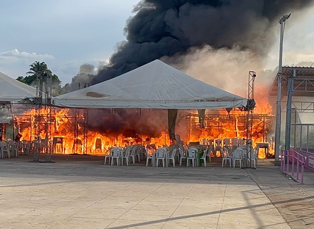 O fogo tomou conta do espaço onde estavam instaladas as barracas utilizadas por comerciantes e organizadores do evento.  Moradores presentes no local se mobilizaram rapidamente para tentar conter as chamas antes da chegada de apoio oficial.