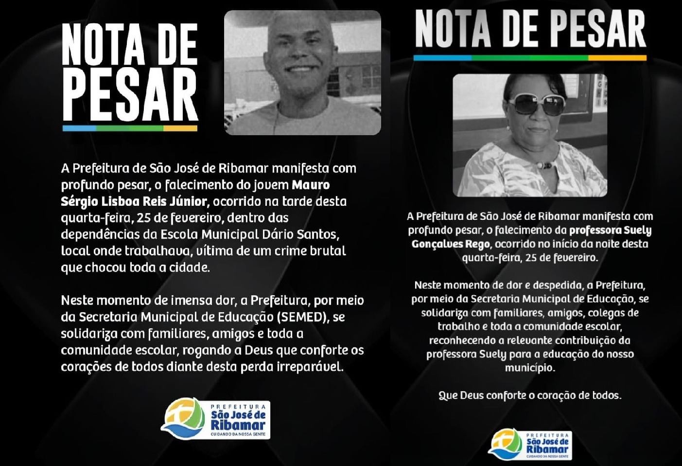O jovem Mauro Sérgio Lisboa Reis Júnior foi assassinado a tiros na noite dessa quarta-feira (25) dentro da Escola Municipal Diário Santos, localizada no bairro Cruzeiro, em São José de Ribamar. O pai dele, Mauro Sérgio Lisboa Reis, também foi baleado e socorrido com vida. Uma professora da unidade morreu após sofrer um infarto ao saber do ataque.