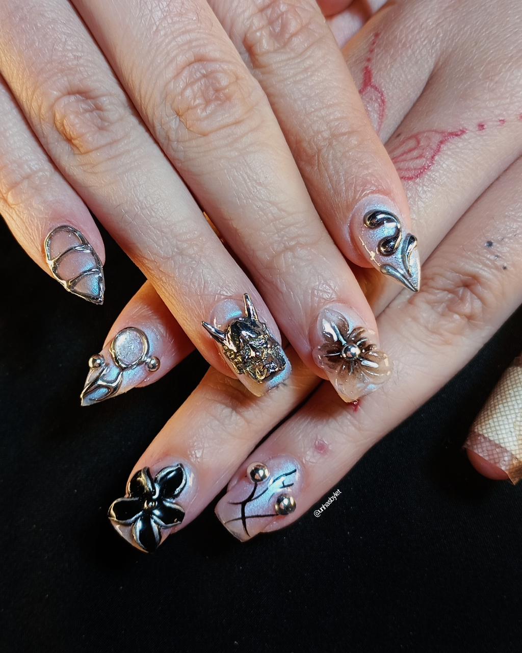 A paixão pela arte e a vontade de criar motivaram Letícia a ingressar em um curso de nail designer na cidade de Yokohama, período no qual se encantou por métodos não tão convencionais no Brasil. “Quando eu comecei a estudar sobre unhas de gel e decorações, ainda na escola japonesa, fiquei apaixonada pelas decorações super diferentes que elas fazem. Então, a partir daí, eu decidi me aprofundar mais. E, quanto mais eu pesquisava, mais eu me aproximava do estilo alternativo, com unhas em esculturas 3D e pedraria”, afirma a profissional.
