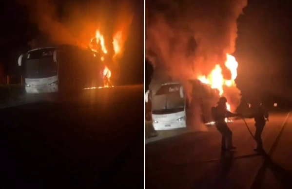 Um ônibus de turismo da empresa Telestur ficou destruído em incêndio na noite desse domingo (4) na BR-343, em Floriano, no Sul do Piauí.
