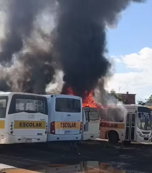 A intensa fumaça escura chamou a atenção de moradores da região, que registraram o incêndio e compartilharam imagens nas redes sociais. Parte da frota foi consumida pelas chamas, gerando prejuízos e preocupação entre a população.