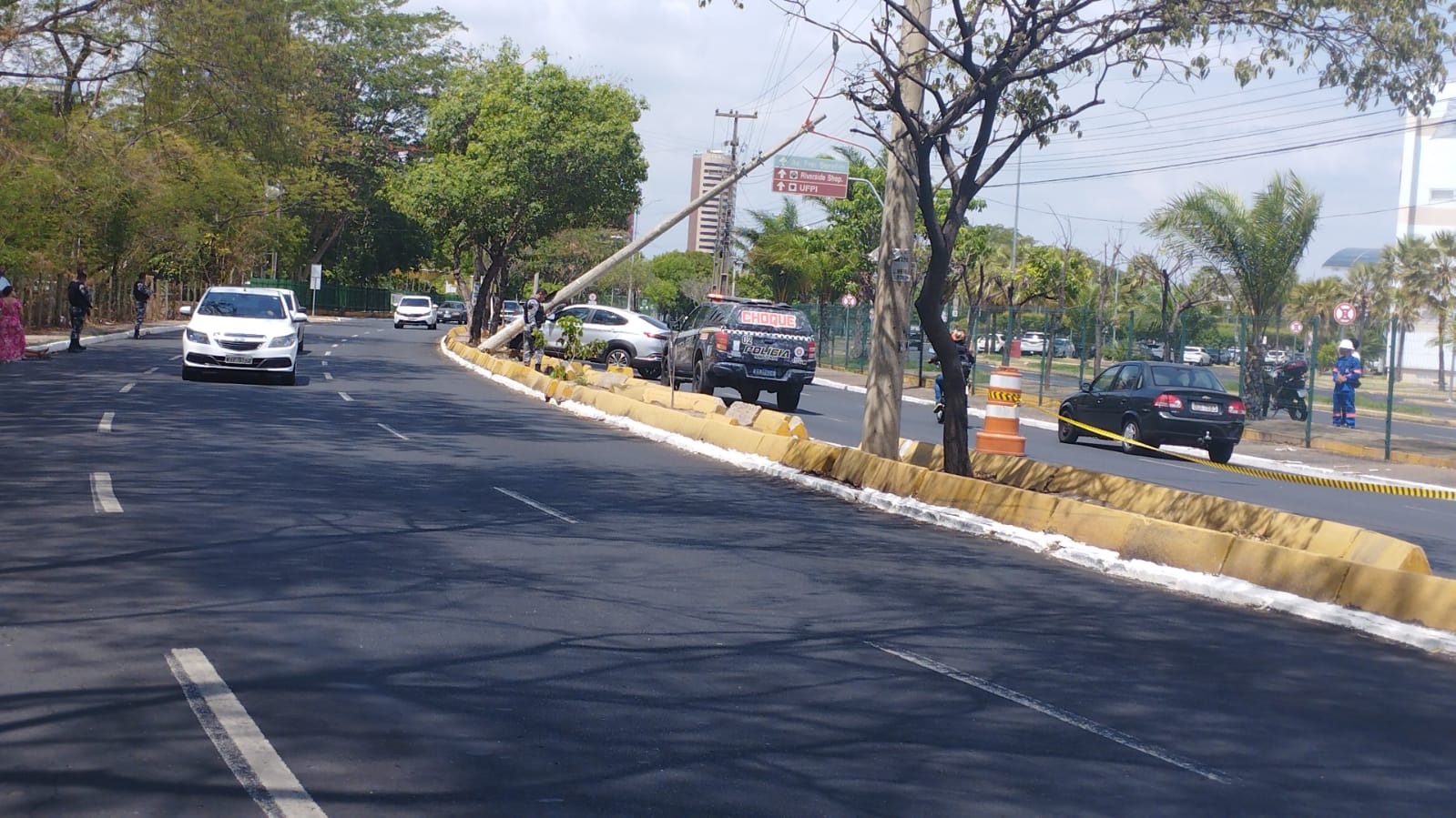 Um poste foi danificado e ficou quebrado na avenida Raul Lopes, em frente ao Teresina Shopping, após uma colisão envolvendo um carro de passeio branco na manhã deste sábado (6). A motorista do veículo, uma mulher, não sofreu ferimentos. A dinâmica exata do acidente ainda está sendo apurada.