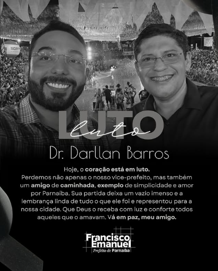 Francisco Emanuel encerrou a homenagem com uma mensagem de despedida: "Sua partida deixa um vazio imenso, mas também a lembrança de tudo o que ele foi e representou para nós. Que Deus o receba com luz e conforte o coração de todos que o amavam. Vá em paz, Dr. Darllan! Parnaíba jamais esquecerá você".