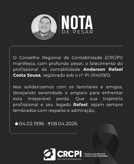 O Conselho Regional de Contabilidade do Piauí também divulgou nota de pesar pelo falecimento de Anderson Rafael.