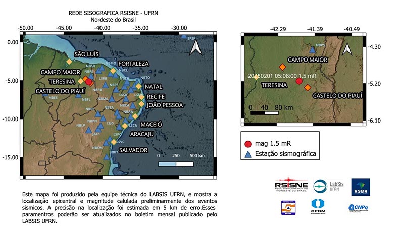 Foto: LabSis/UFRN Castelo do Piauí registra tremor de terra no domingo; Defesa Civil descarta danos