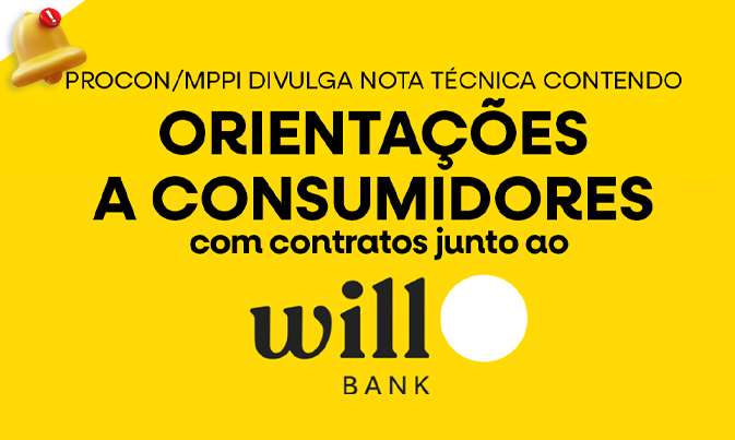 O Programa de Proteção e Defesa do Consumidor (Procon) do Ministério Público do Estado do Piauí (MPPI) publicou a Nota Técnica nº 01/2026 com orientações essenciais para todos os clientes do Will Bank, sociedade de crédito, financiamento e investimento, que teve liquidação extrajudicial decretada pelo Banco Central no último dia 21 de janeiro.