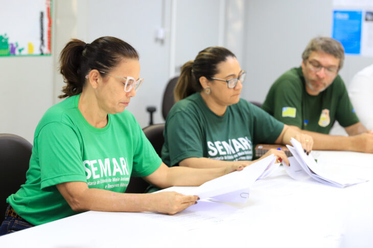 Compunham a equipe: a secretária de Meio Ambiente, Sádia Castro; a diretora de Licenciamento e Fiscalização, Adriana Sá; o gerente de Fiscalização, Renato Nogueira; o diretor de Gestão Hídrica, Marcelo Silva, e os auditores fiscais Ambientais André Nogueira, Felipe Gomes e Daniel Marçal.