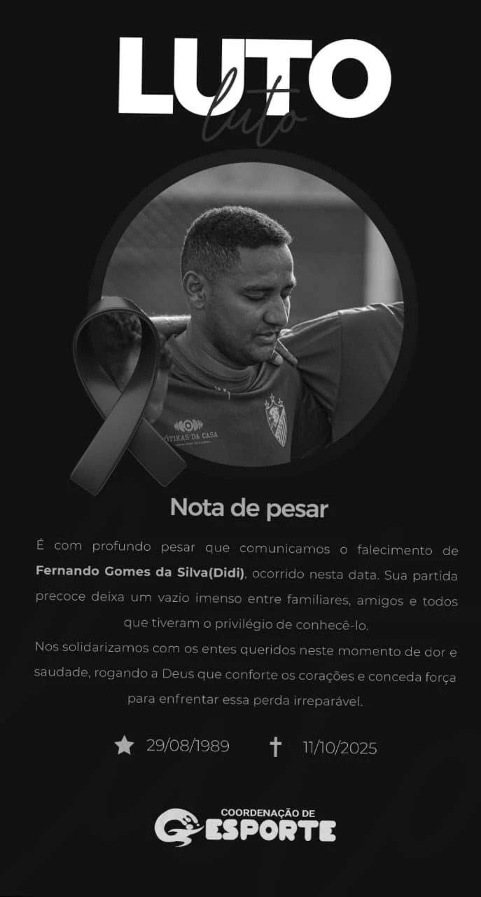 O jogador de futebol Fernando Gomes da Silva, conhecido como Didi, de 36 anos, morreu após passar mal durante uma partida do Campeonato Municipal de Futebol em Angical do Piauí, no sábado (11). A suspeita é que ele tenha sofrido uma parada cardiaca.
