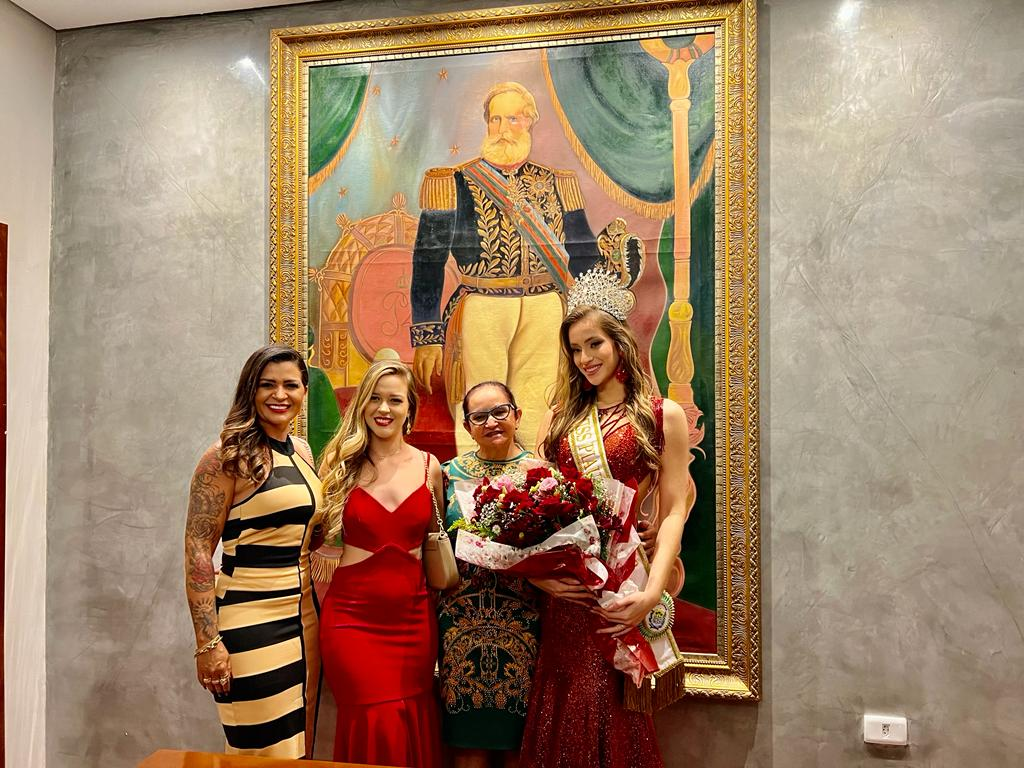 Na oportunidade, a prefeita aproveitou e entregou à jovem a chave da cidade, uma faixa de miss confeccionada por uma artesã local e um buquê de rosas. Joana Luísa agradeceu a recepção e saudou os presentes.
