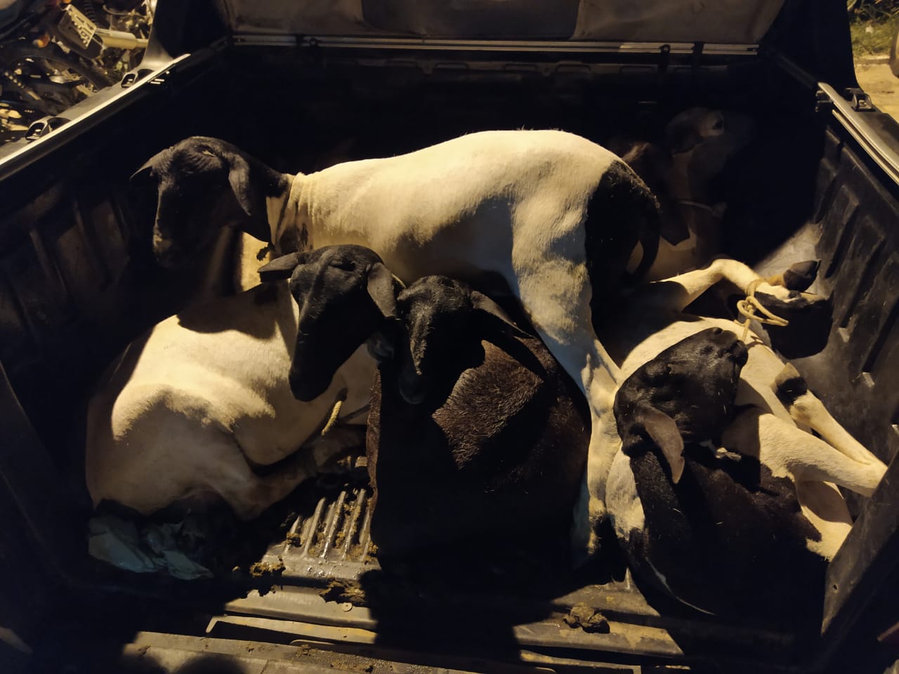 Os policiais realizavam patrulhamento na cidade quando viram um veículo Strada de cor cinza na avenida José Aquiles de Sousa, centro de Fronteiras. Ao abordarem os ocupantes do veículo, de iniciais A. J. L da S e J. M. N, constaram que eles estavam com os animais na carroceria.