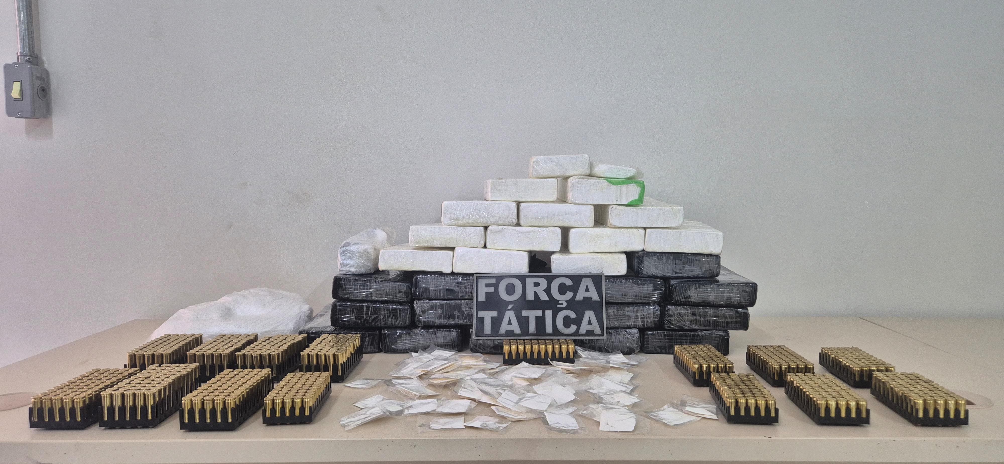 Uma carga com drogas e munições foi apreendida sendo transportada em um ônibus interestadual, nesta terça-feira (3), na BR-020, zona urbana de Simplício Mendes. Segundo a Polícia Militar do Piauí, em duas malas e uma mochila foram encontrados 27 tabletes grandes e quatro tabletes menores de cocaína, além de 100 papelotes da mesma droga, um invólucro de skank e uma sacola contendo um pó branco ainda não identificado para perícia.