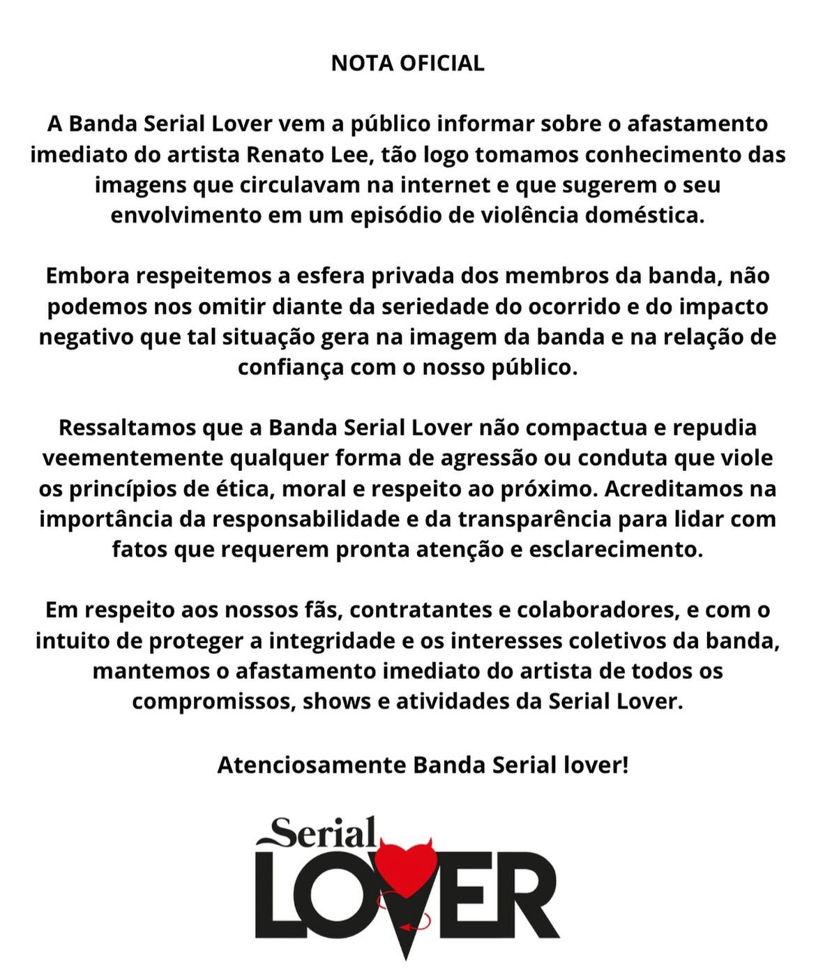 Após a denúncia, a banda Serial Lover anunciou o afastamento imediato de Renato Lee. Em nota, a banda disse que tomou conhecimento das imagens e decidiu pelo afastamento de Renato de todos os compromissos, shows e atividades.