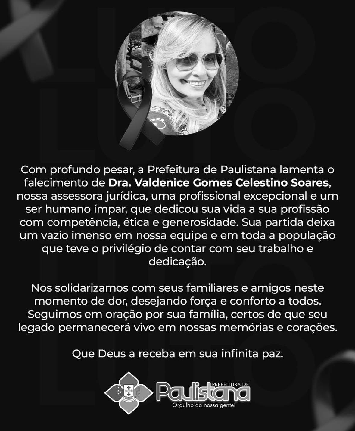 A Prefeitura Municipal de Paulistana decretou luto oficial e divulgou nota de pesar: