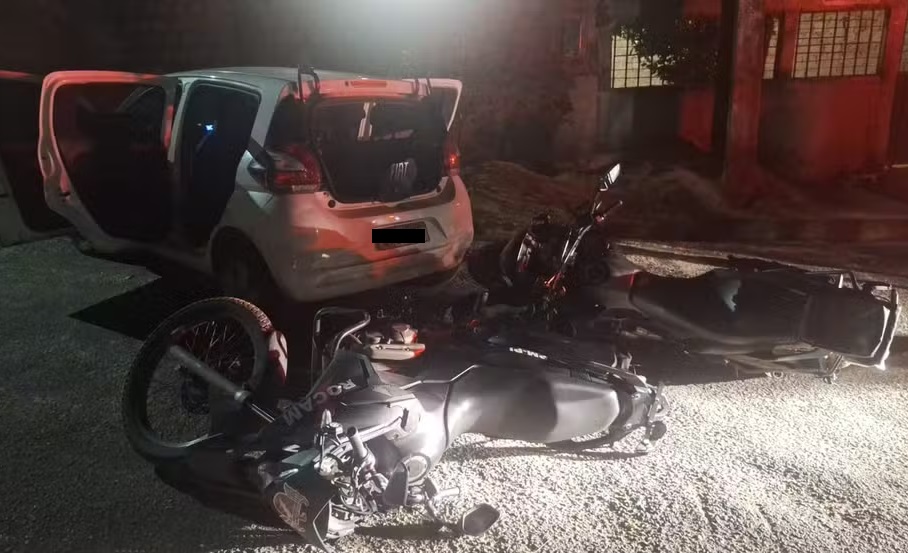 A perícia da Polícia Civil realizou os levantamentos no local, incluindo a análise do carro utilizado pelos suspeitos e de duas motocicletas da ROCAM envolvidas na ocorrência. Com o grupo, foram apreendidas duas armas de fogo: um revólver calibre .38 sem numeração e uma arma de fabricação artesanal.
