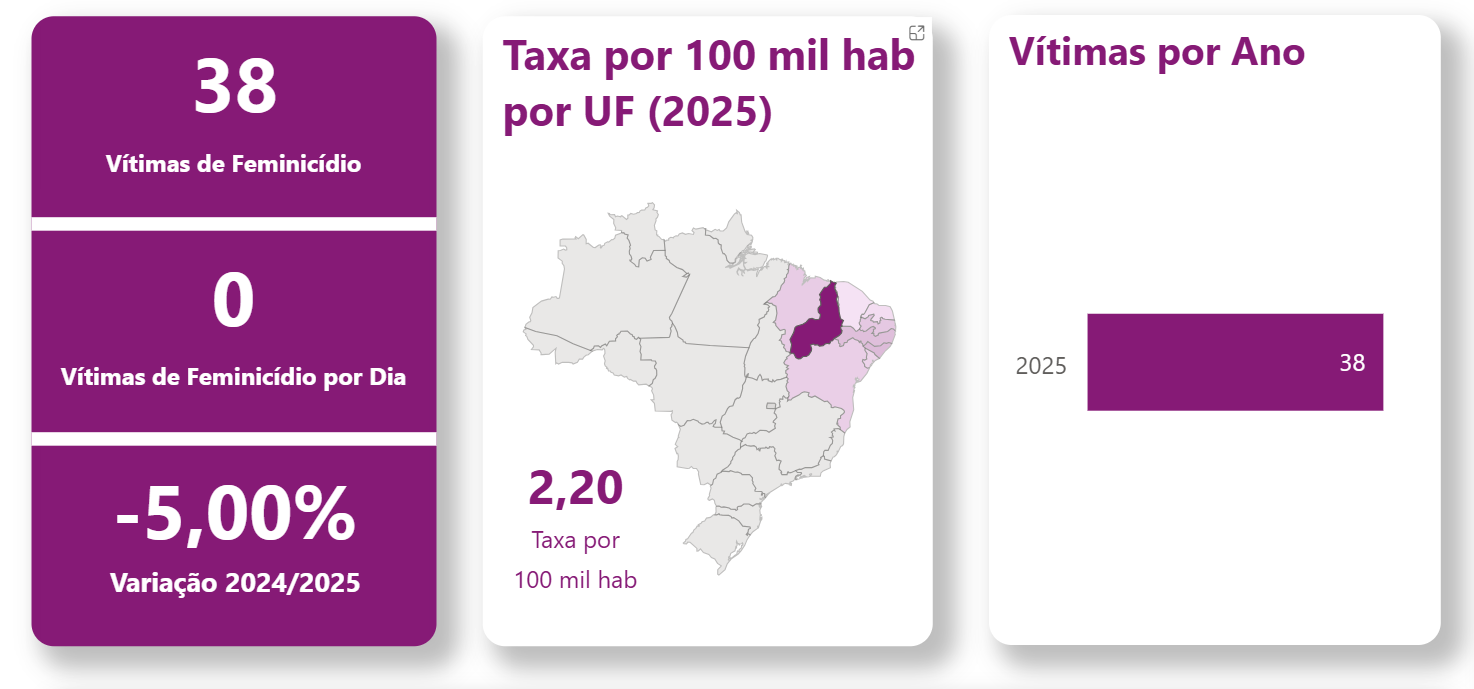 No Piauí, os números também chamam atenção. O estado está entre os cinco com maior taxa de feminicídios do nordeste em 2025, com 2,20 casos a cada 100 mil habitantes. Foram registradas 38 mulheres vítimas de feminicídio no período, ainda com possibilidade de variações à medida que os dados são refinados e atualizados pelas autoridades.