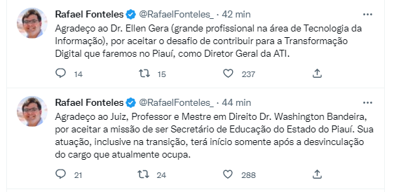 "Agradeço ao Dr. Ellen Gera (grande profissional na área de Tecnologia da Informação), por aceitar o desafio de contribuir para a Transformação Digital que faremos no Piauí, como Diretor Geral da ATI".