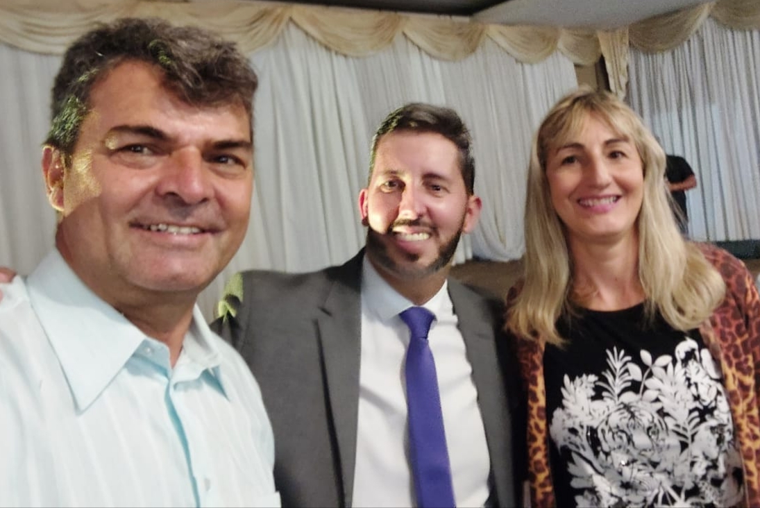 Tim, Leandro Grass e Ellen Borges durante festa política em Brasília